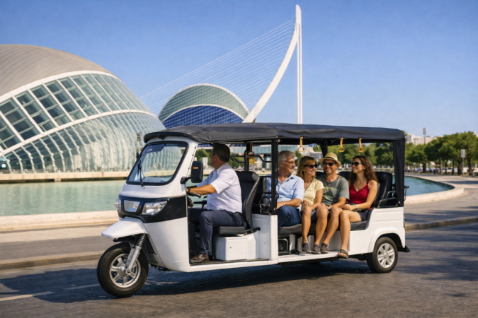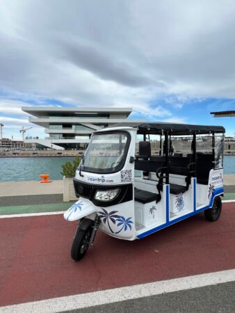 Aprovecha tu escala en Valencia con un tour en tuk tuk eléctrico diseñado para cruceristas. Recorre los principales puntos de interés de la ciudad de forma rápida, cómoda y divertida.